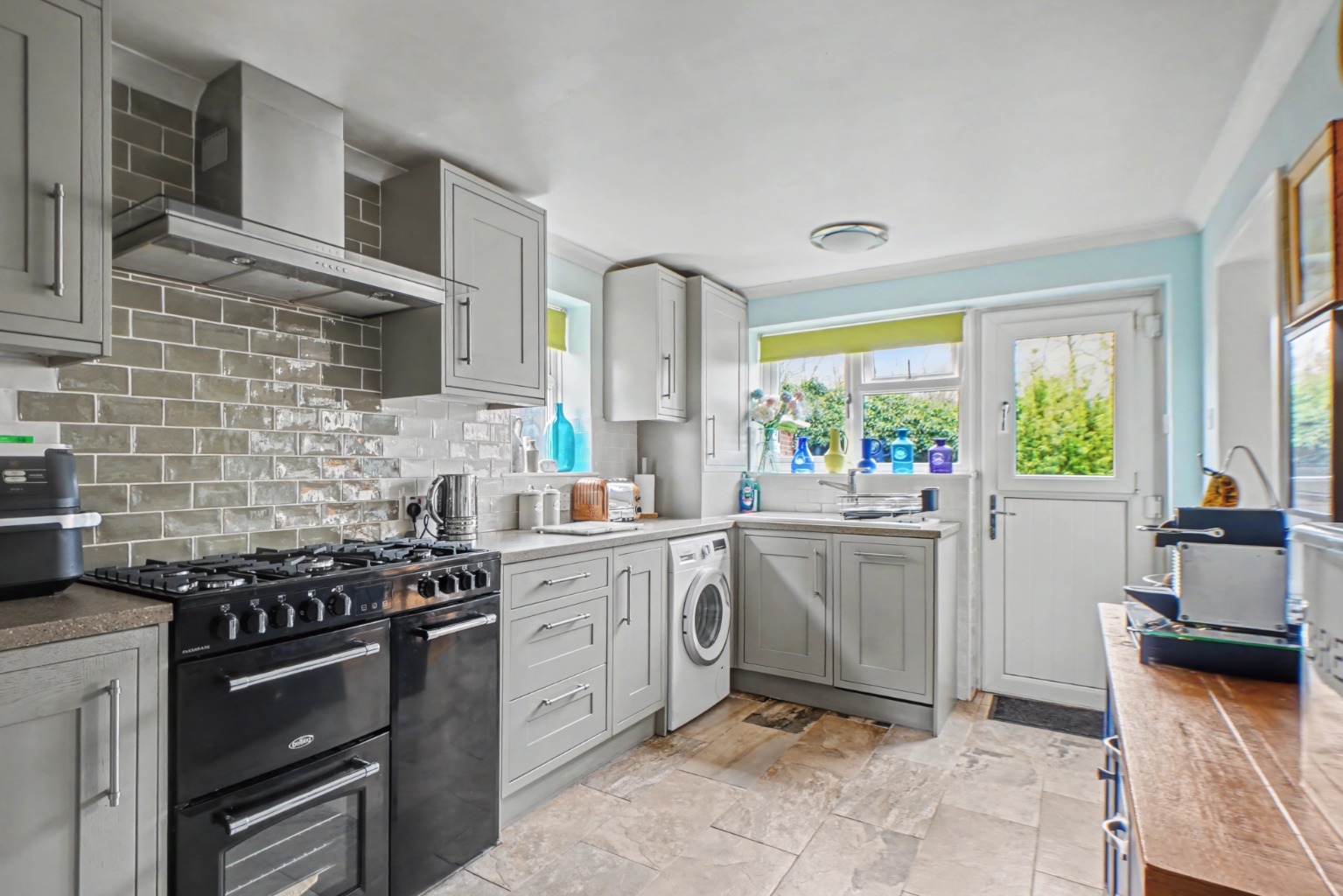 The ground floor features a generous lounge/diner providing ample space for both relaxation and entertaining. The addition of a bright and airy conservatory further enhances the living area, offering a delightful space to enjoy views of the rear garden throughout the seasons. The modern kitchen in neutral tones completes the ground floor layout, leading seamlessly to the outdoor space.