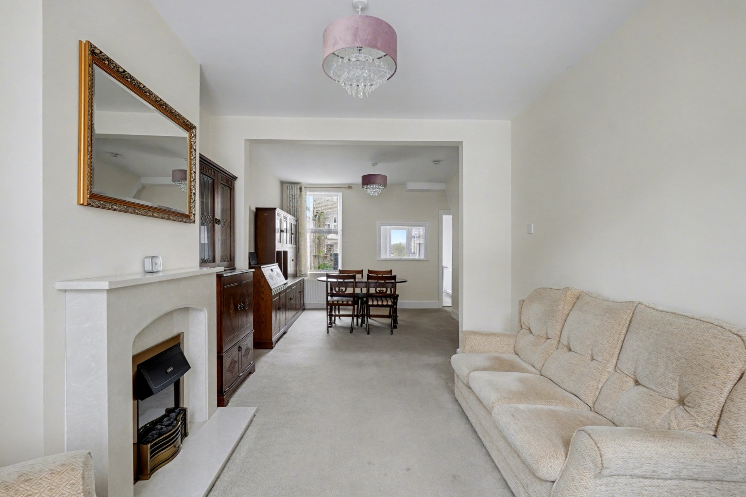 On the first floor, you will find three separate, good-sized bedrooms. Each bedroom offers comfortable dimensions, providing private sanctuaries for all members of the household. The neutral palette continues here, offering a blank canvas for new owners to personalise to their taste. A well-appointed family bathroom serves these bedrooms, completing the upstairs accommodation.
