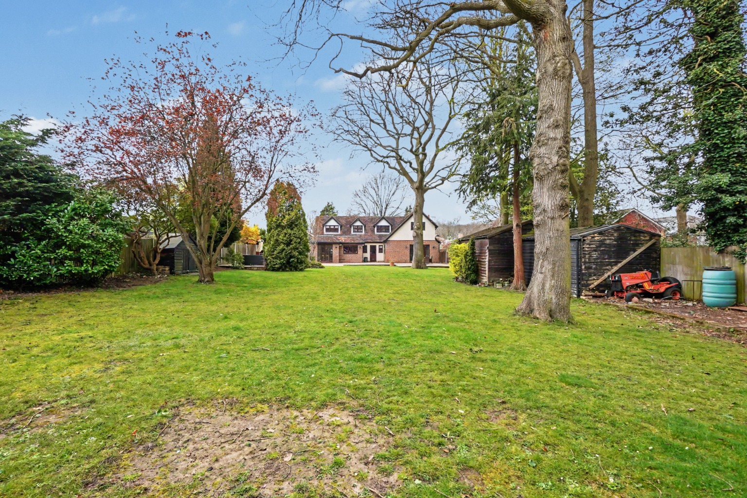 From the moment of arrival, the home’s distinctive Arts & Crafts architectural influence makes a striking impression. Characterised by its low-pitched rooflines, deep eaves, and substantial porch, the façade exudes charm and understated elegance. A sweeping driveway provides ample parking for multiple vehicles, framed by thoughtfully landscaped borders that ensure privacy and a sense of seclusion. To the rear, the magnificent 180ft garden offers a true sanctuary. Designed with both relaxation and recreation in mind, it features expansive lawns, mature planting, and a variety of social spaces—ideal for entertaining, alfresco dining, or simply enjoying the tranquillity of this idyllic setting. For families, it presents a rare opportunity for children to explore, play, and grow in a safe and inspiring outdoor environment.